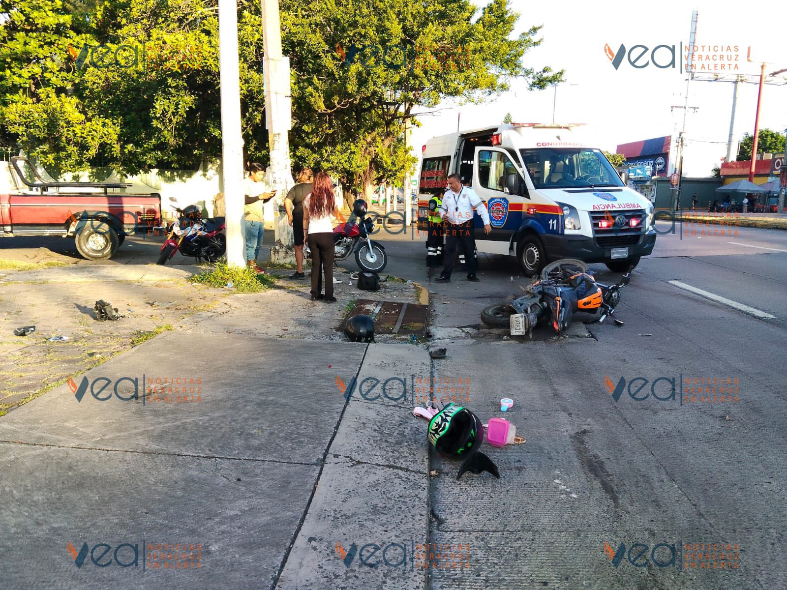 Veracruz Ver. Un choque entre dos motocicletas movilizó a cuerpos de emergencia la tarde de este sábado en…