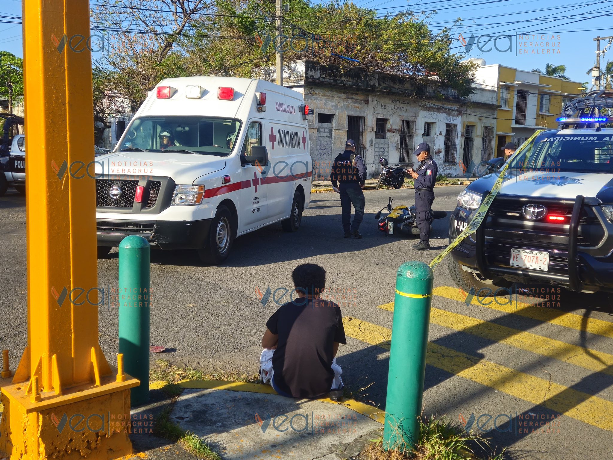 CHOQUE ENTRE MOTOCICLISTAS EN PLENO CENTRO DEJA UN LESIONADO