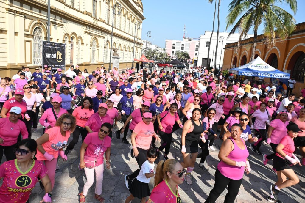 Alrededor de 200 mujeres se congregaron en la Plaza Atarazanas para participar en el evento «Guantes Rosas» para promover la actividad física y la sana convivencia.