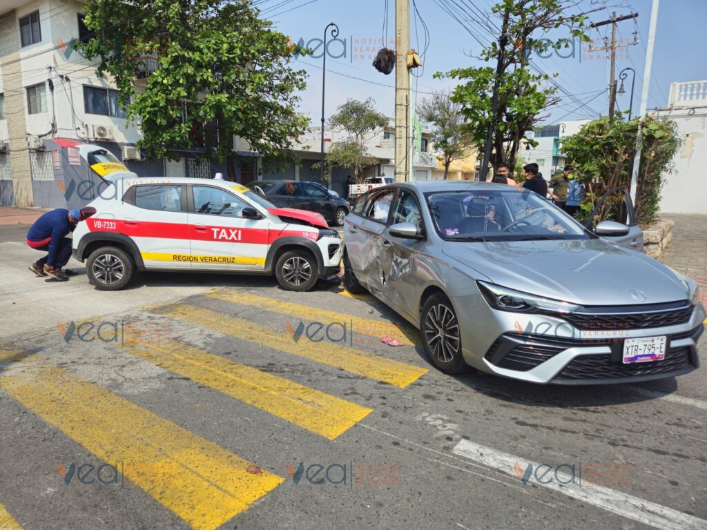Tras el choque, el taxi impactó el costado derecho del vehículo particular y terminó sobre la banqueta.