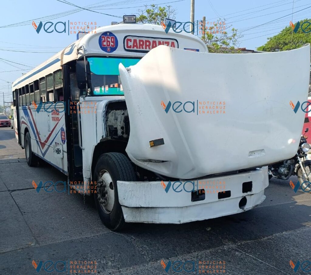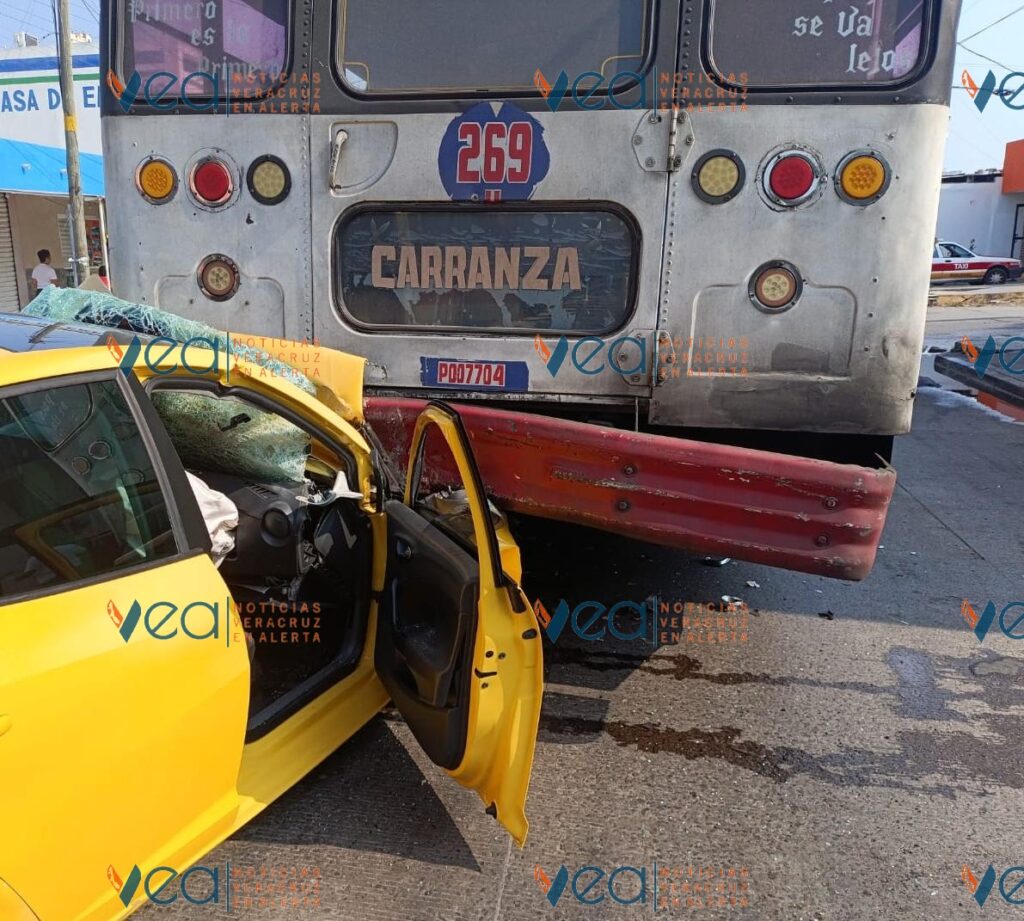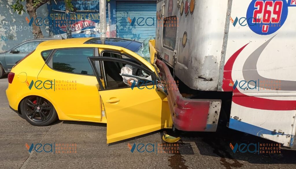 La mañana de este sábado se registró un fuerte accidente en calles de la colonia Carranza en Boca del Río, donde un vehículo particular terminó incrustado en la parte trasera de un camión urbano.
