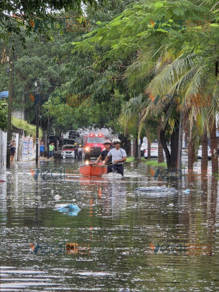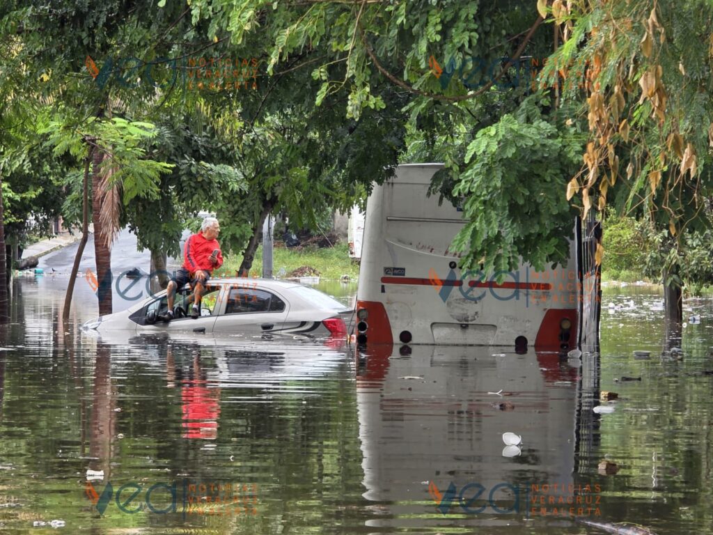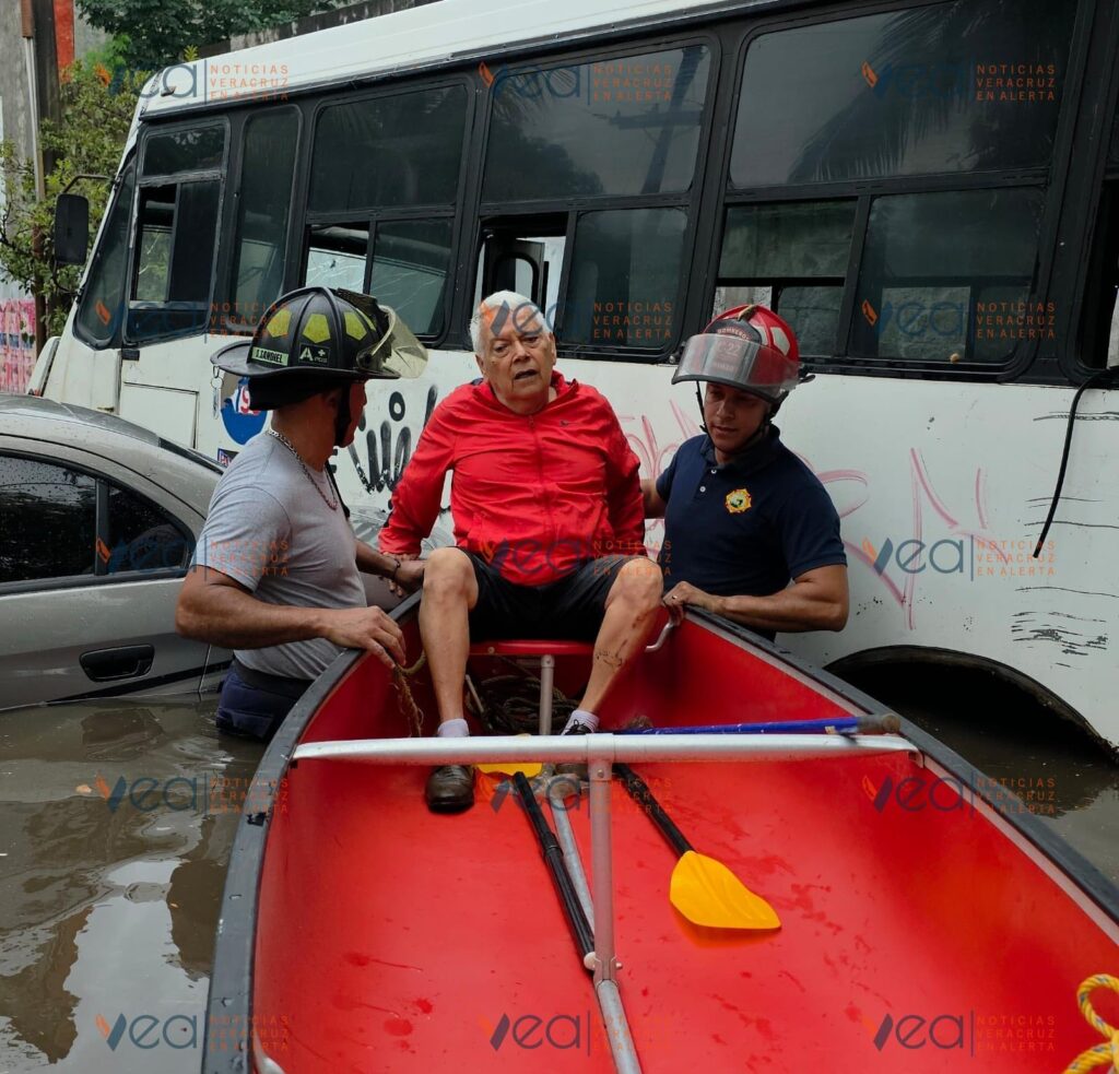 Un hombre de 75 años fue rescatado por Bomberos Municipales de Veracruz luego de quedar atrapado en su automóvil al intentar cruzar una calle inundada en la colonia Agustín Acosta Lagunes.