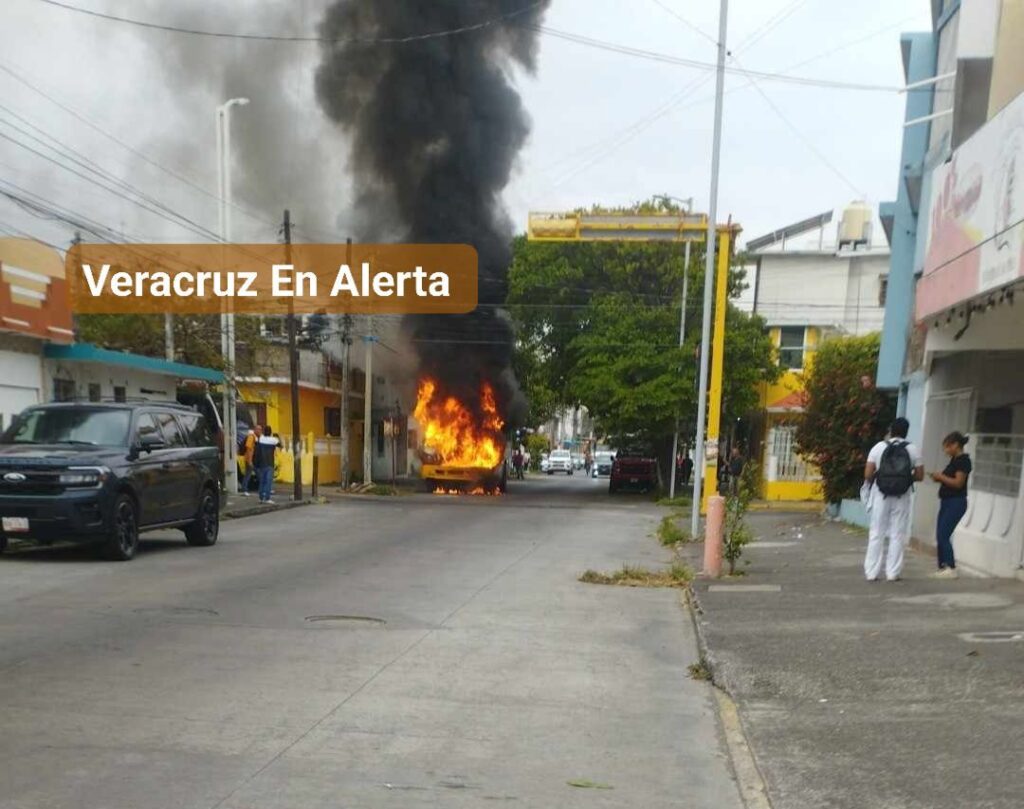 Un camión de pasajeros de la ruta Norte Sur Lomas 4 se incendió en el fraccionamiento Reforma en el municipio de Boca del Río, hoy martes por la mañana.