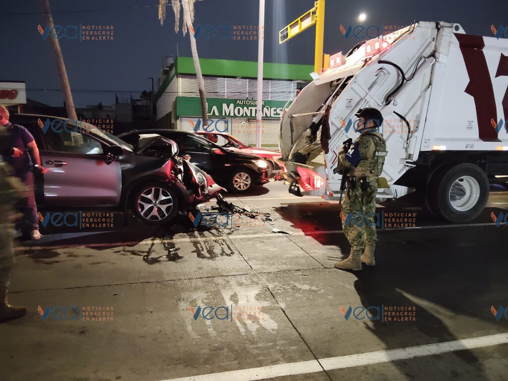 4 de marzo de 2026. Veracruz, Ver. | Una persona lesionada dejó el choque por alcance de una camioneta Kia con un camión recolector de limpia pública sobre avenida Allende y Juan Soto en la colonia Centro.