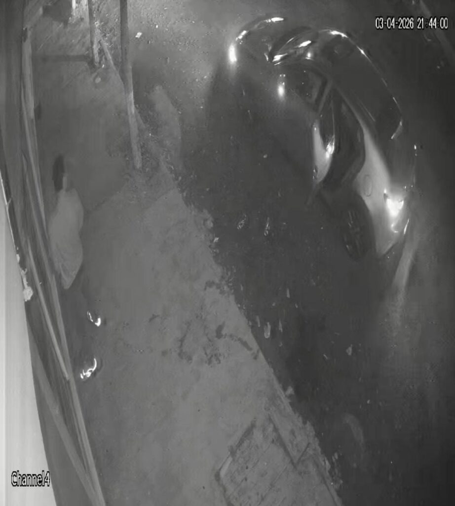 De acuerdo con grabaciones de las cámaras de seguridad del comercio dañado, un hombre bajó de la parte trasera de un vehículo para realizar sus necesidades fisiológicas en plena vía pública