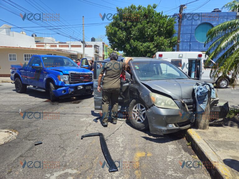 Un Nissan Tsuru marcado con el número VB-7404 fue impactado al intentar incorporarse a la avenida por un Chevrolet Beat marcado como VB-2866, quien presuntamente no disminuyó su velocidad.