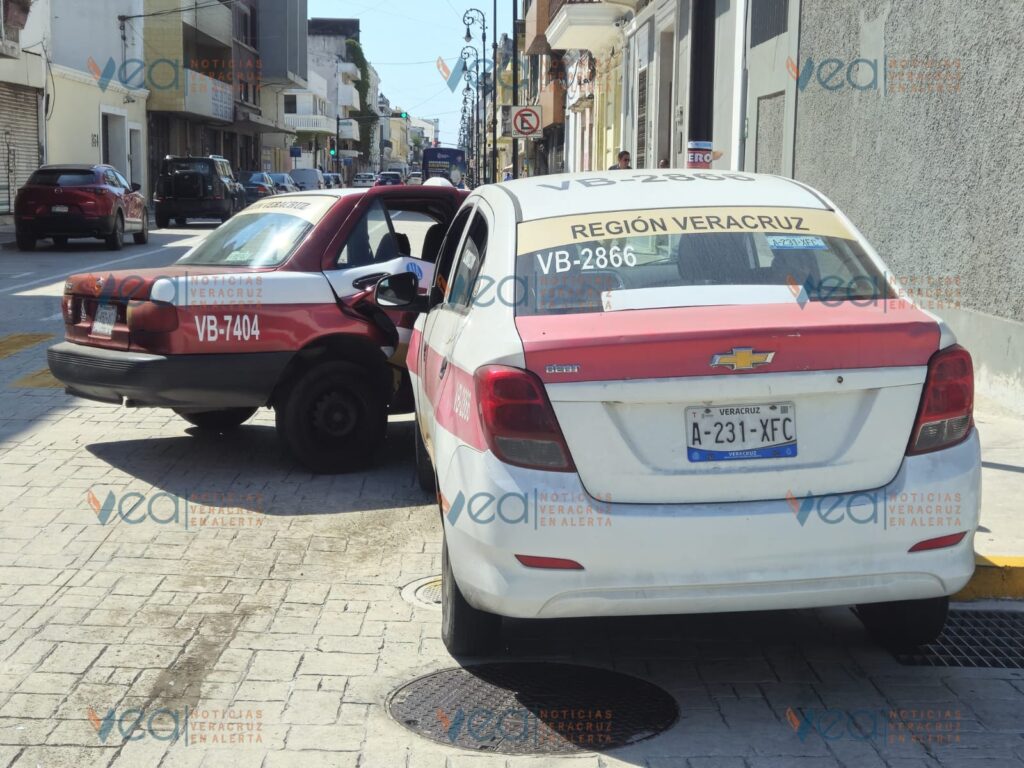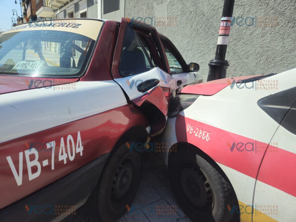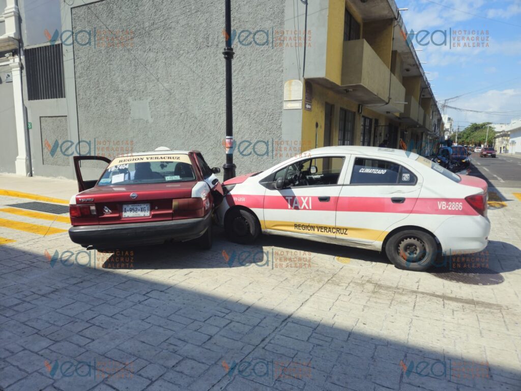 Esta mañana sucedió un fuerte percance entre dos taxis en la esquina de calle Emparan y avenida 5 de Mayo en la colonia Centro de la ciudad de Veracruz.