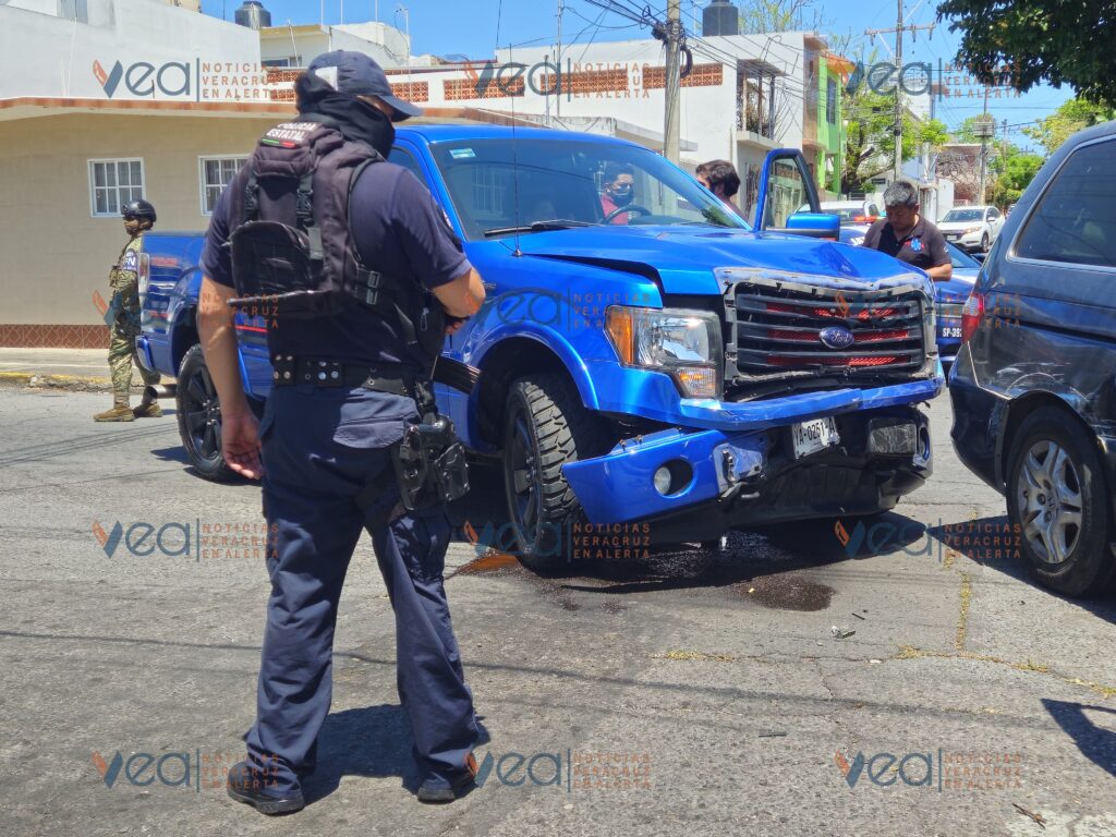 Un aparatoso choque entre dos camionetas particulares se registró este martes por la tarde en calles del fraccionamiento Reforma en la ciudad de Veracruz.