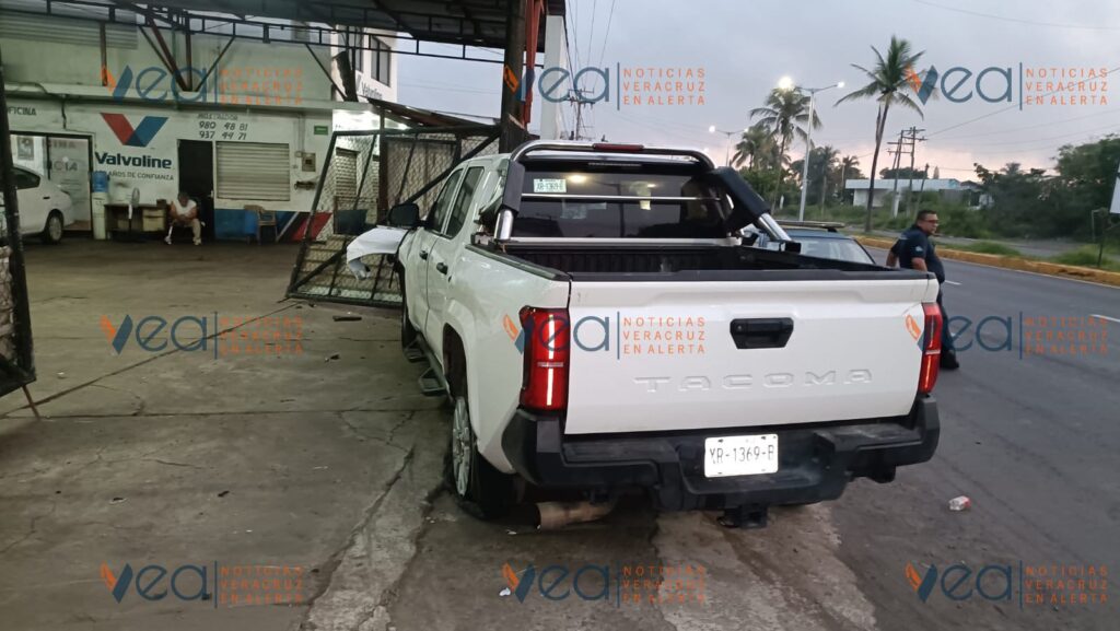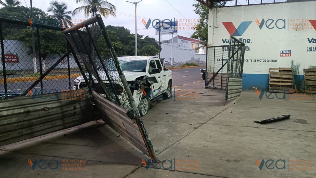 Esto provocó que la camioneta se subiera al camellón central, cruzara al carril contrario y terminara incrustada en la reja de un taller mecánico.