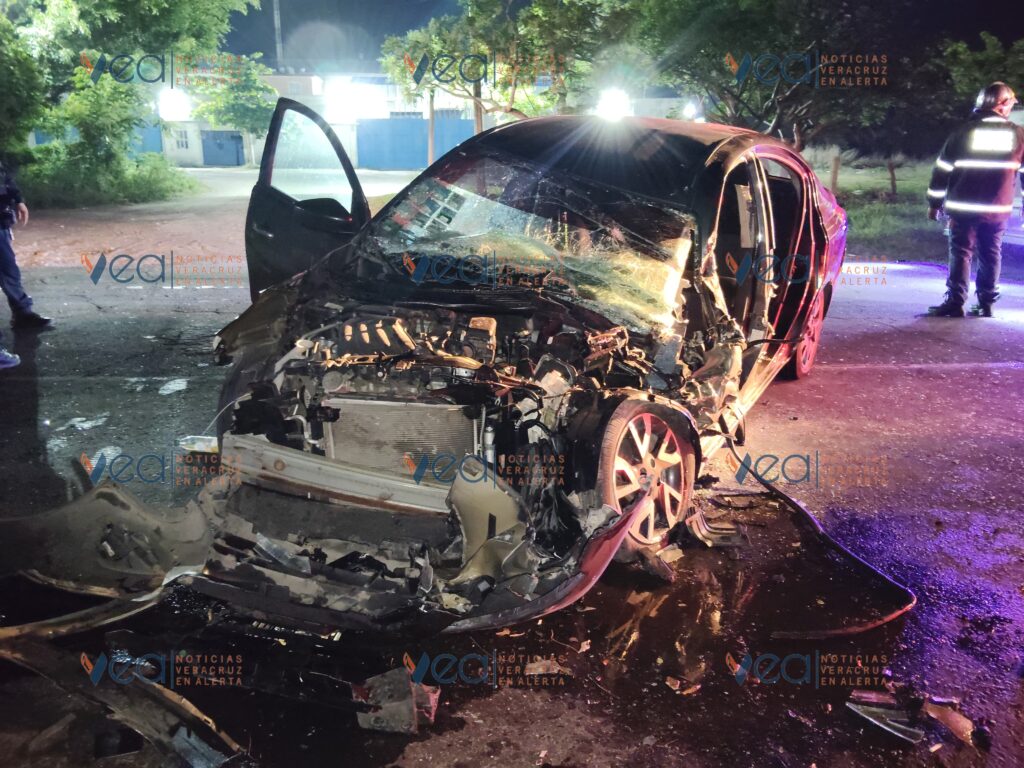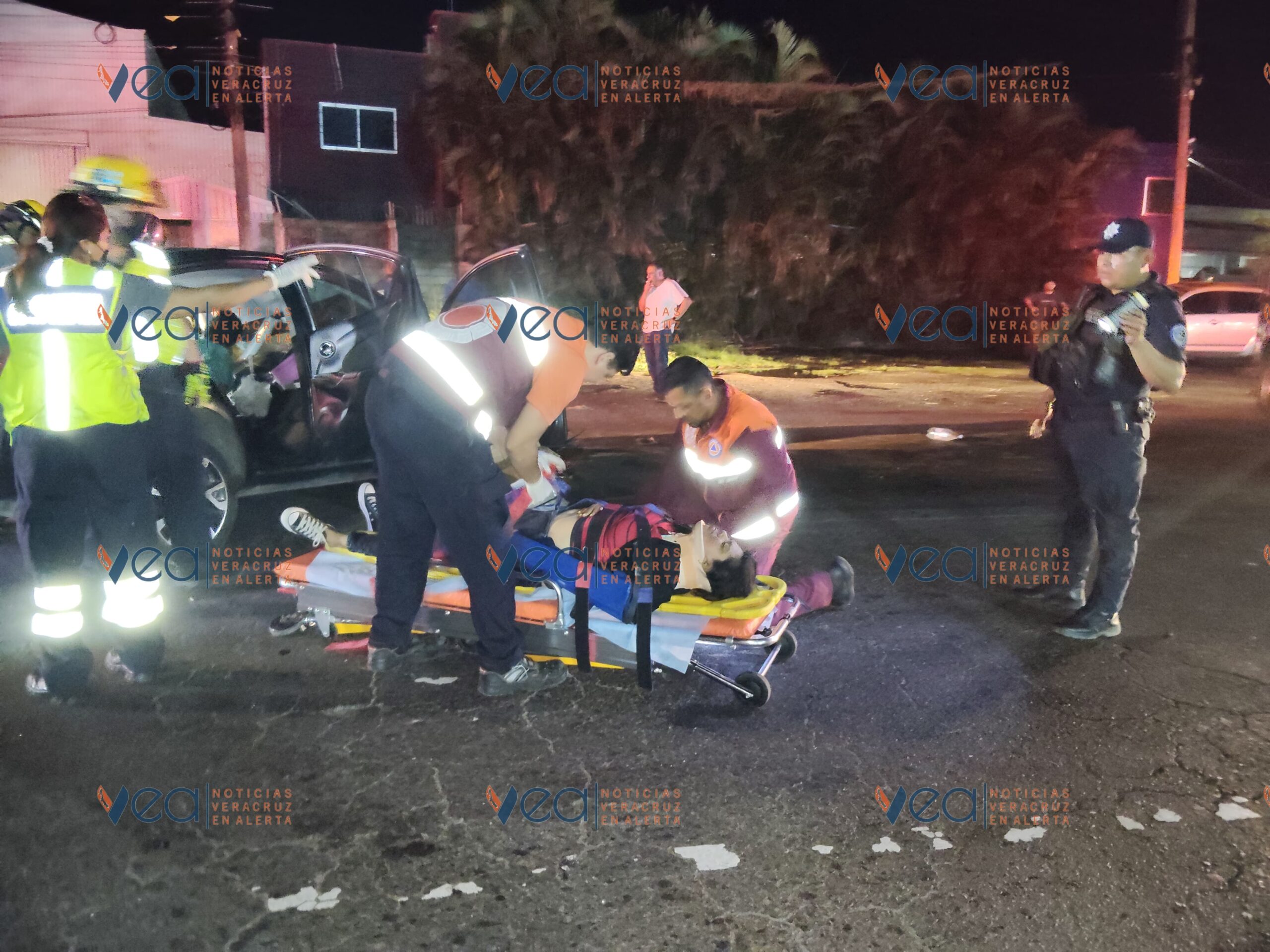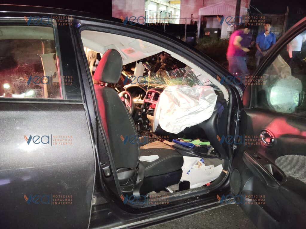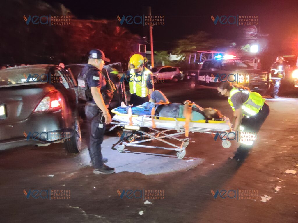 Los bomberos usaron equipo hidráulico para quitar la puerta trasera de donde rescataron a una mujer con lesiones en varias partes del cuerpo, por lo que fue trasladada a una clínica del Seguro Social en Veracruz.
