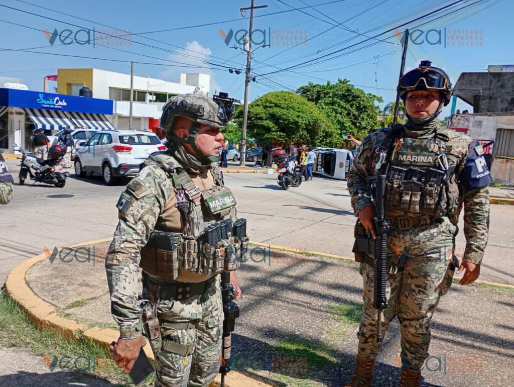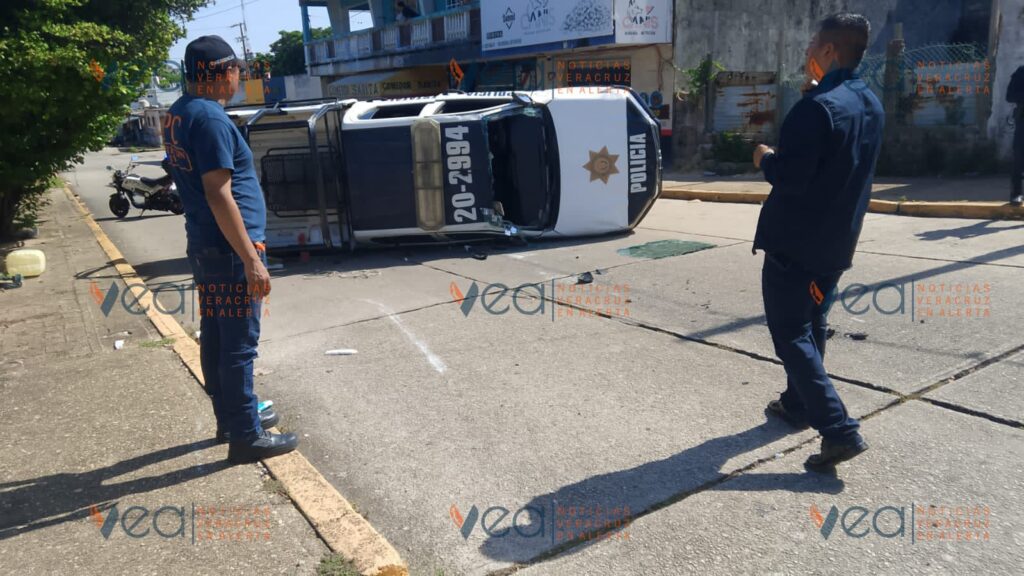 El percance ocurrió la tarde de este jueves cuando la camioneta oficial, una Toyota Hilux con placas VE-394-A1 y número económico 20-2994, circulaba sobre la avenida Ocampo. Al llegar al cruce con Revolución, impactó contra una Hyundai Creta blanca, en la que viajaban dos personas. El choque provocó que la patrulla terminara volcada sobre uno de sus costados, dejando a los uniformados lesionados.