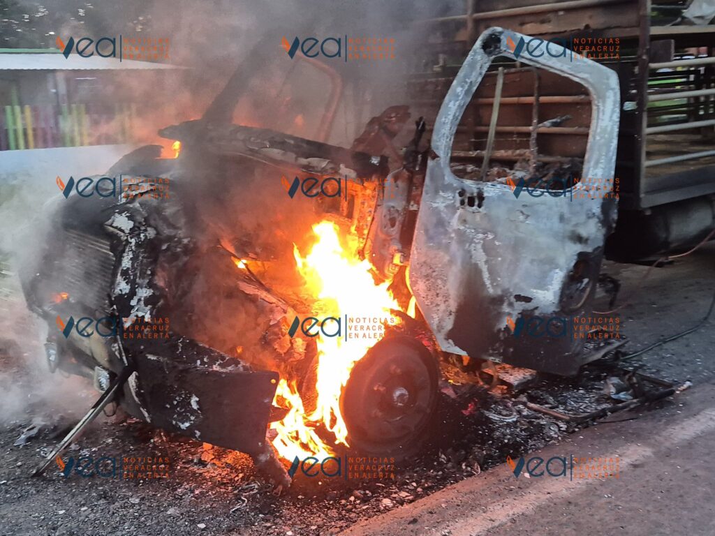 De acuerdo con el chofer, mientras circulaba por la carretera a la altura de la comunidad, la unidad presentó una aparente falla mecánica. Primero comenzó a salir humo del motor, por lo que decidió detenerse para revisar; sin embargo, en cuestión de segundos el fuego se propagó, obligándolo a salir de la cabina para ponerse a salvo.