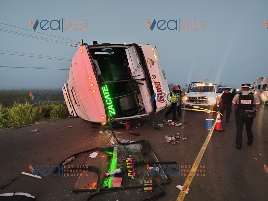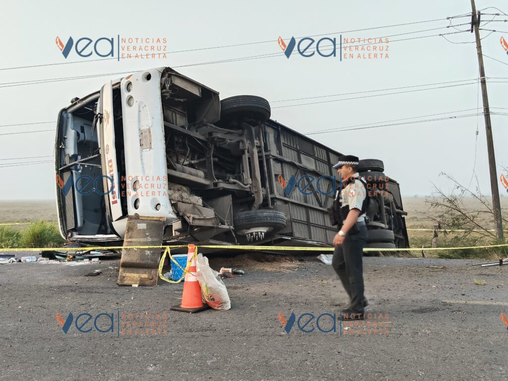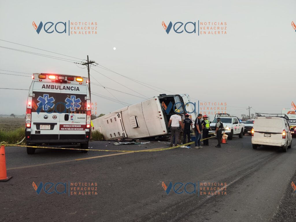 5 de marzo de 2026. Alvarado, Ver. | La volcadura de un autobús de pasajeros este jueves por la mañana en la carretera Paso del Toro-Alvarado, dejó varios heridos y dos fallecidas, una madre y su bebé.