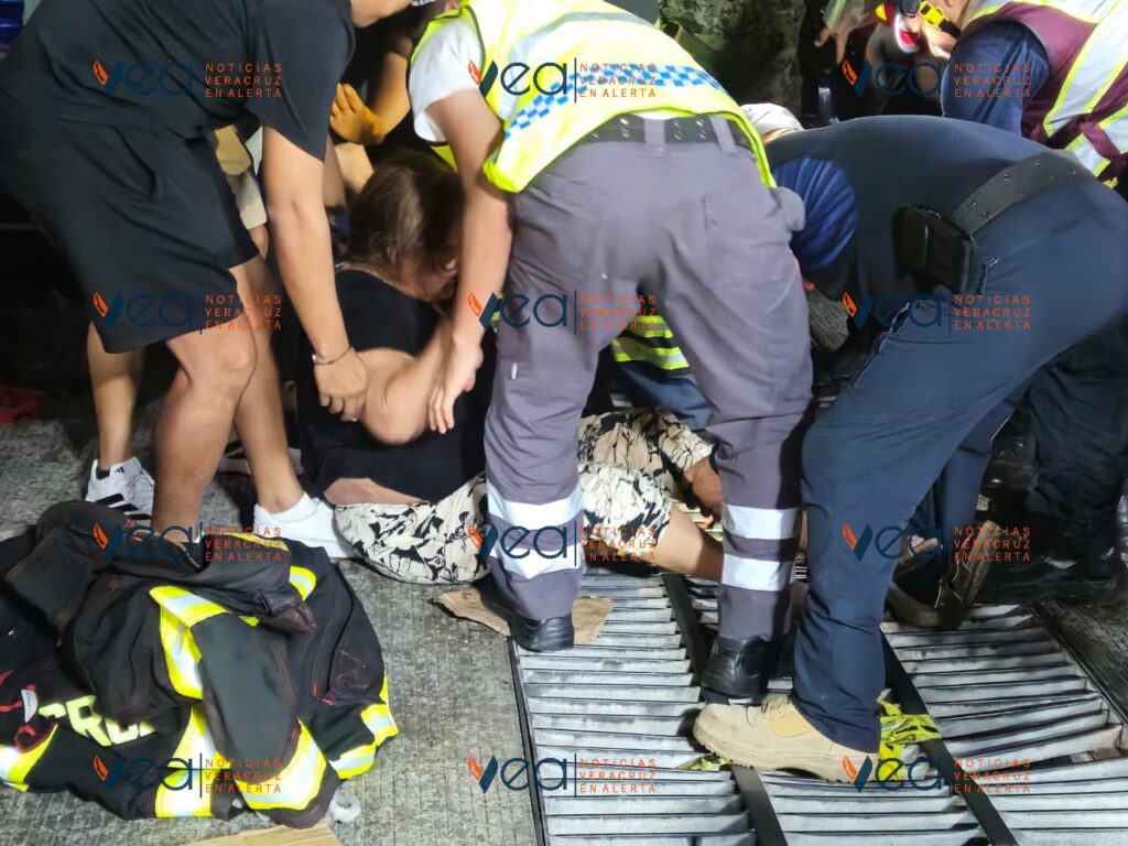 Minutos después arribaron bomberos municipales de Veracruz, quienes realizaron maniobras utilizando pinzas mecánicas para lograr el rescate. La mujer permaneció atrapada alrededor de 15 minutos, tiempo durante el cual se mantuvo la tensión en el lugar.