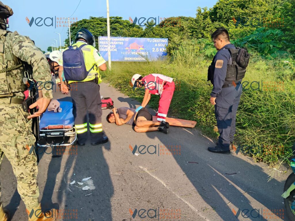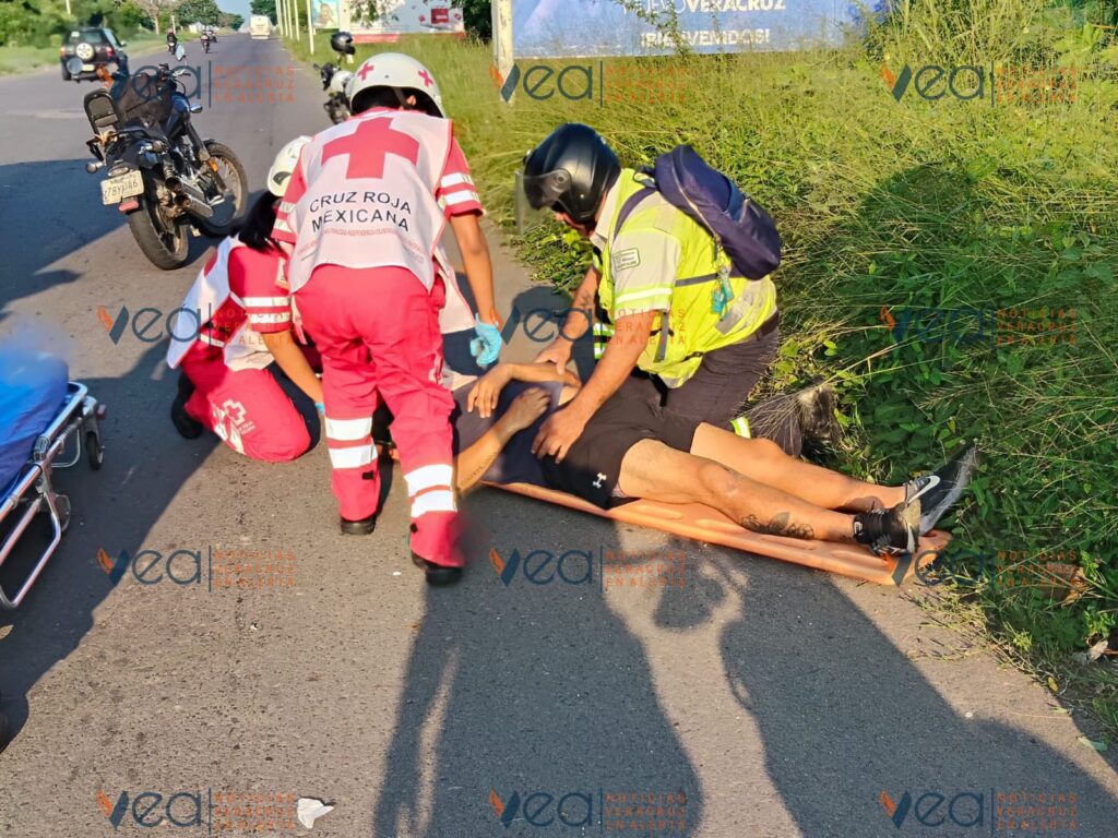 Un motociclista resultó con lesiones de consideración tras perder el control de su motoneta y derrapar sobre la avenida Paseo Costa del Sol, en el fraccionamiento Nuevo Veracruz.