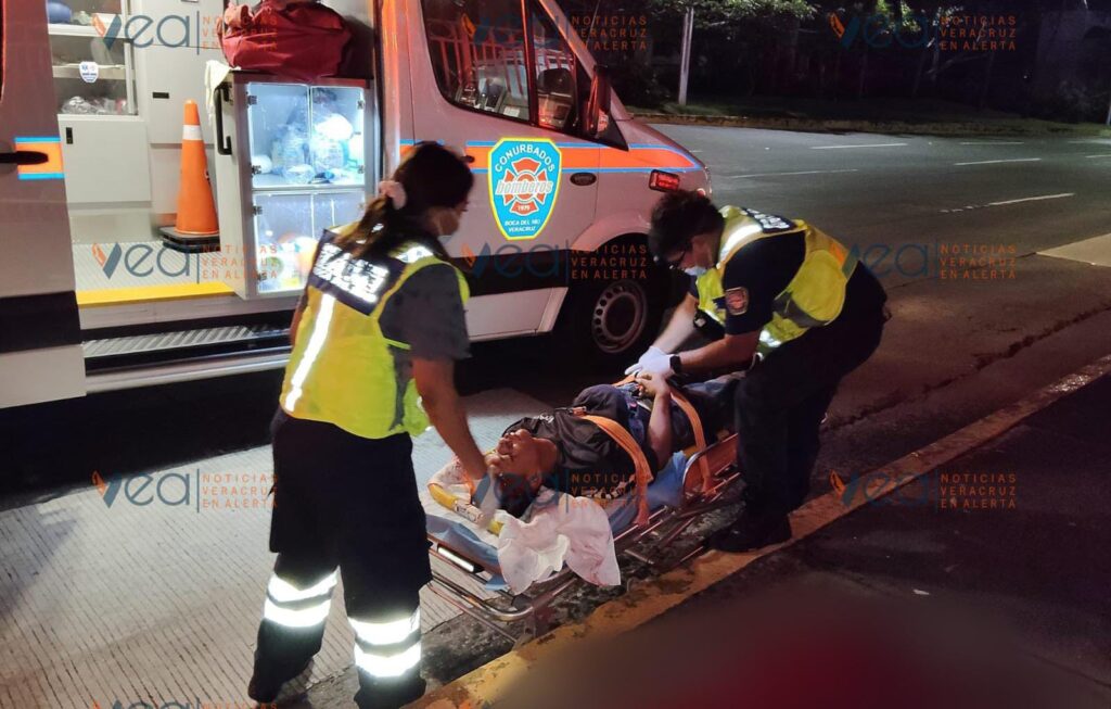 El motociclista presentó lesiones graves en la cabeza luego de derrapar cuando circulaba sobre el bulevar Miguel Alemán, a la altura del monumento al Son Jarocho, en el municipio de Boca del Río.