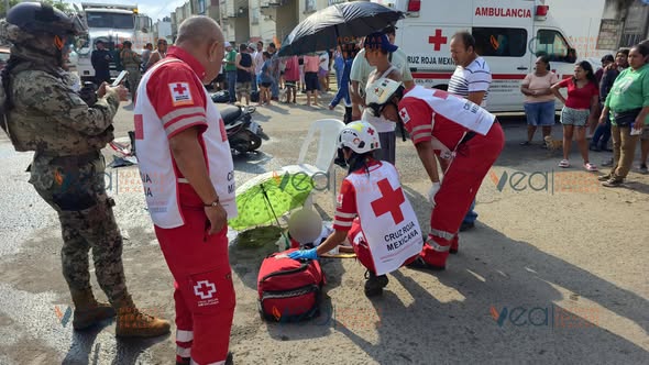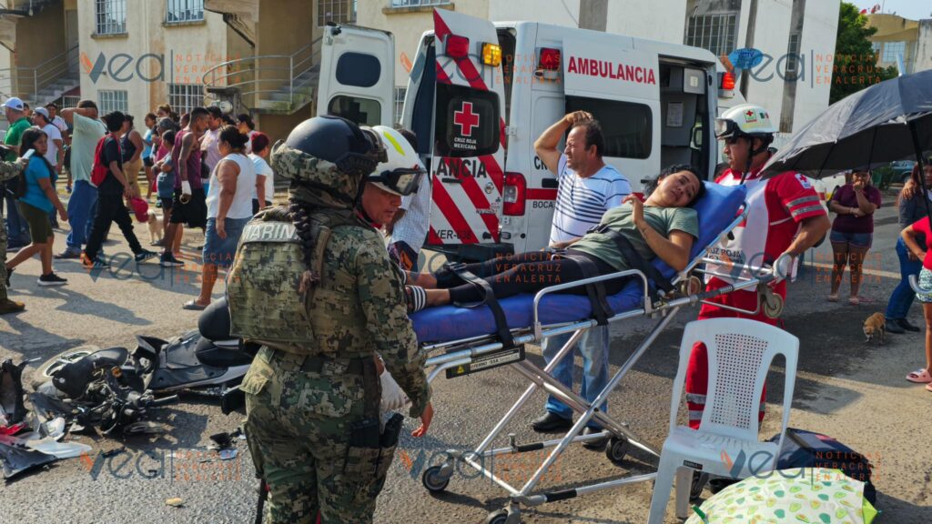 Una mujer y su hijo de apenas cuatro años resultaron lesionados, luego de que la motoneta en la que viajaban se impactara contra un camión volteo en calles del fraccionamiento Bosques de Río Medio, en el norte de la ciudad de Veracruz.