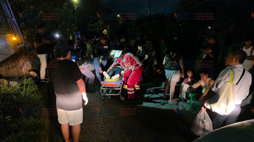 El operador fue identificado como Edwin Y. M., de 40 años, quien conducía la unidad sobre la carretera federal Veracruz–Xalapa, en dirección hacia Tejería. Al llegar a la parada ubicada frente a la entrada del fraccionamiento Geo Villas del Puerto, el camión subió al camellón e impactó un árbol y una base de piedra.