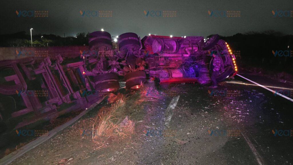 De acuerdo con los primeros reportes, el operador habría perdido el control de la unidad presuntamente por conducir a exceso de velocidad cuando circulaba por la desviación que conecta con la autopista Cardel–Veracruz, con dirección hacia el puerto.