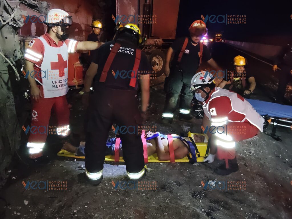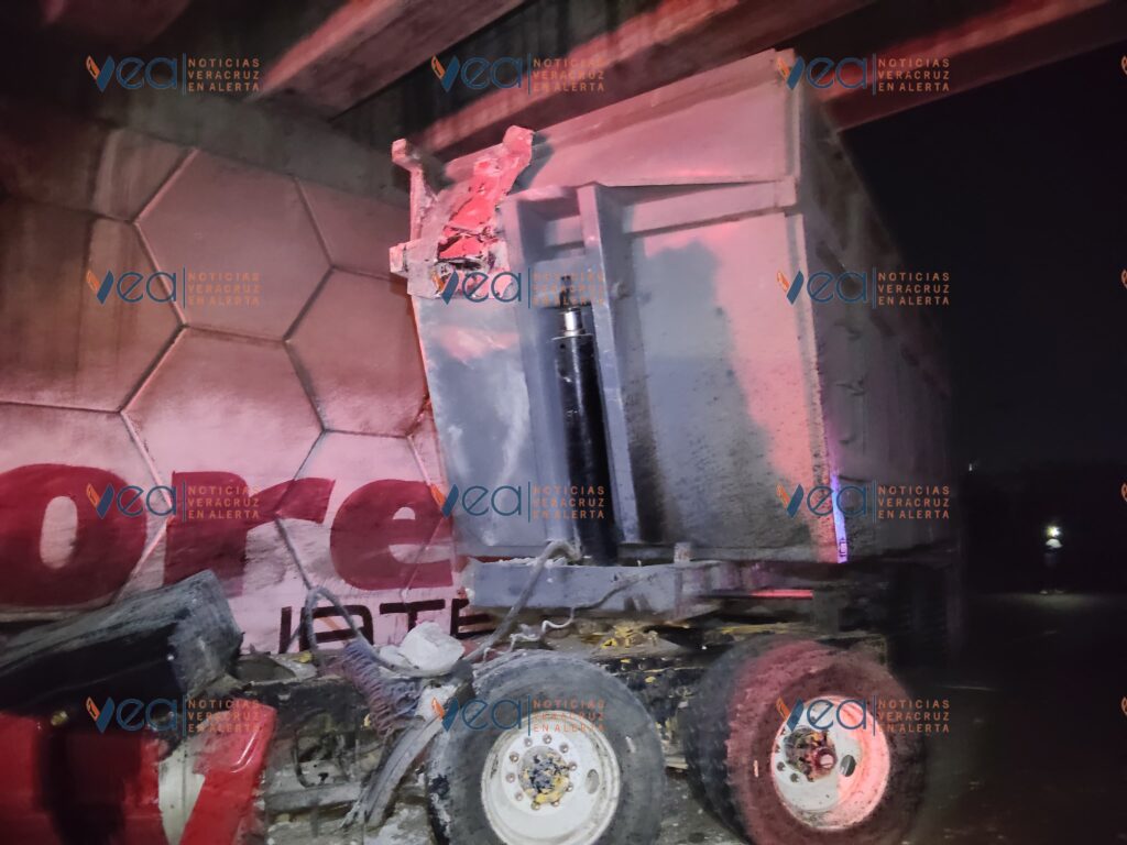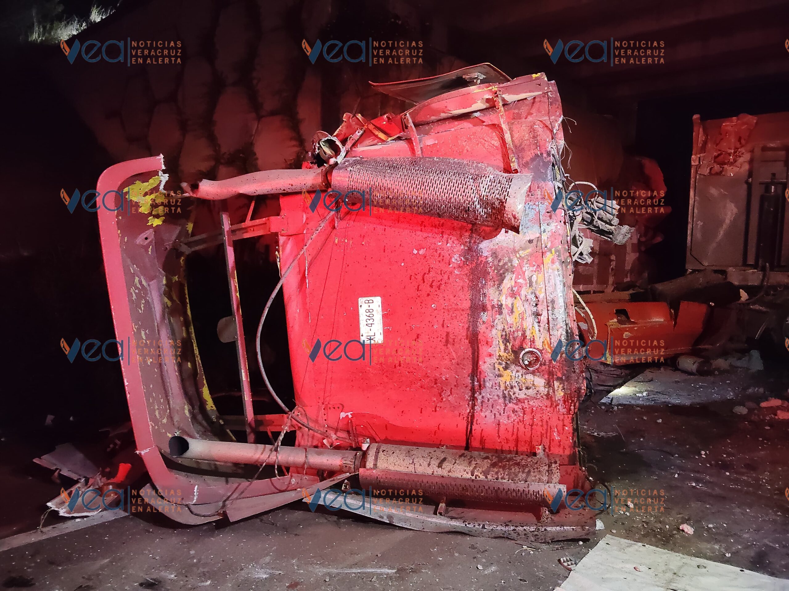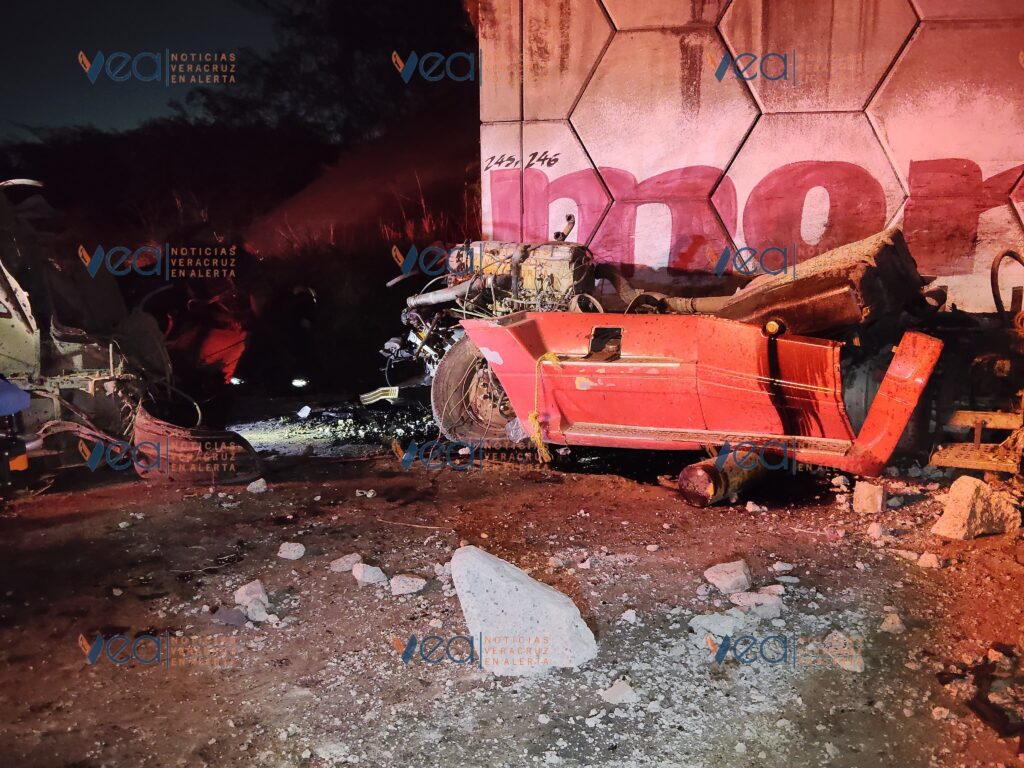 23 de febrero de 2026. Veracruz, Ver. | Un joven trailero sobrevivió luego de impactarse contra la base de un puente durante la madrugada de ayer domingo en la carretera Santa Fe–Paso del Toro, a la altura de la localidad de Dos Lomas.