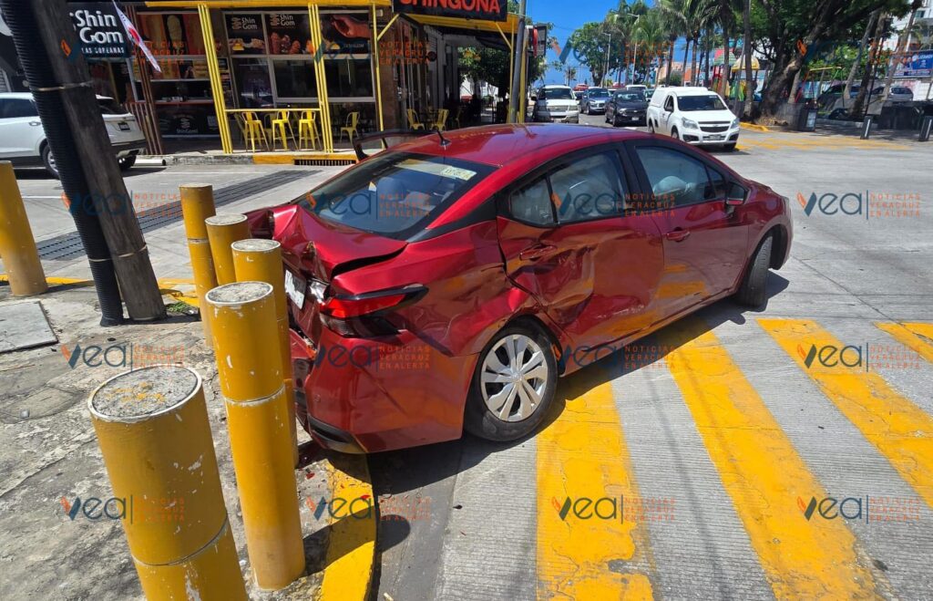 El fuerte impacto hizo que el Versa girara aproximadamente 90 grados, hasta terminar estrellándose con su parte trasera contra unos postes de seguridad metálicos colocados en la esquina.