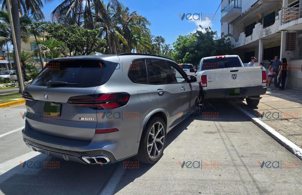 Por su parte, el BMW de lujo también perdió el control y colisionó contra una camioneta Dodge RAM blanca, que se encontraba estacionada en el lugar.