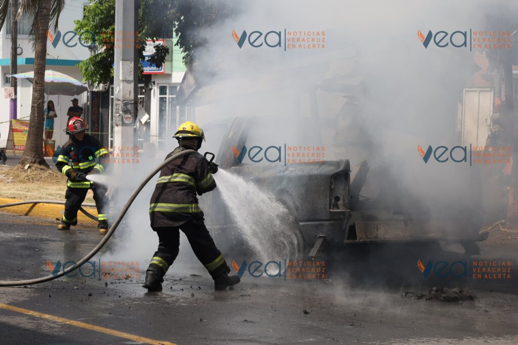 Elementos de la Policía Naval y Estatal cerraron la circulación para evitar riesgos mayores. Finalmente, fueron los Bomberos Municipales de Veracruz quienes lograron controlar el siniestro y enfriar la camioneta para impedir que volviera a prenderse.