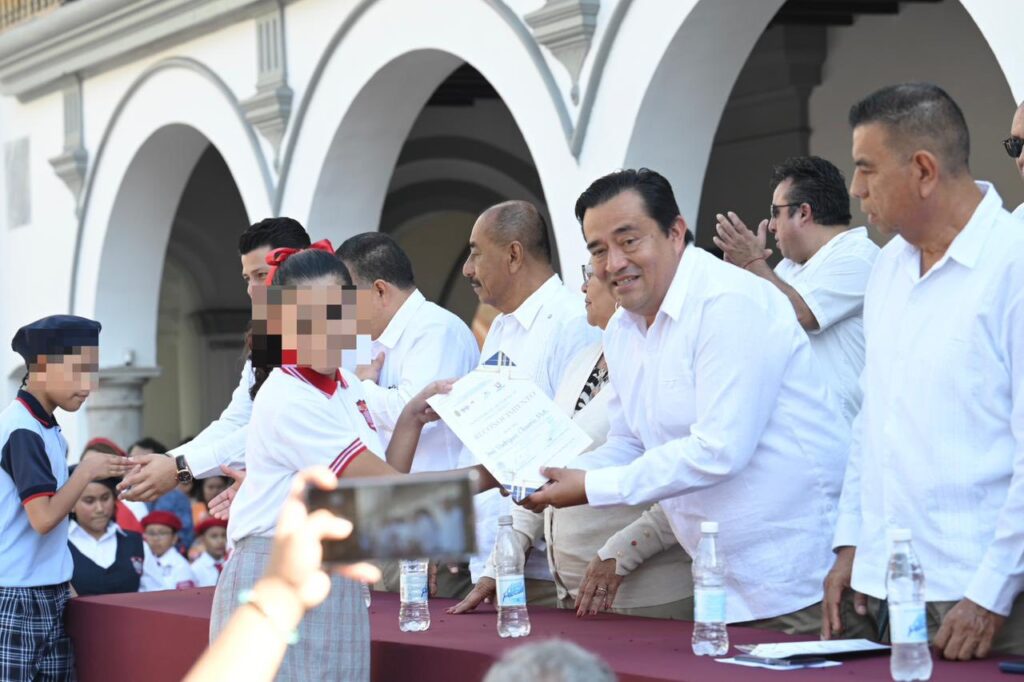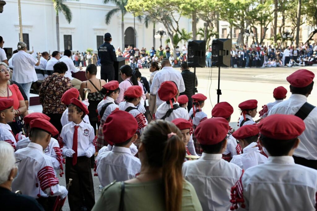 Más de 70 planteles educativos provenientes de Veracruz, Boca del Río, Medellín de Bravo, Paso de Ovejas y Manlio Fabio Altamirano desfilaron desde el Tranvía del Recuerdo hasta el Zócalo.