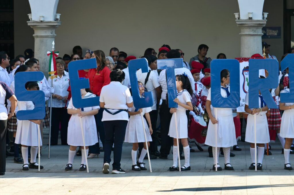 26 de febrero de 2026. Veracruz, Ver. | Cientos de estudiantes de primaria participaron esta mañana de jueves en una demostración de escoltas que recorrió la avenida Independencia, en el centro de Veracruz.