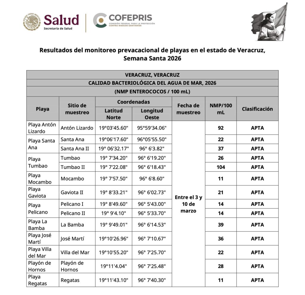 PLAYAS DE VERACRUZ-BOCA DEL RÍO APTAS PARA ACTIVIDADES DE SEMANA SANTA: COFEPRIS