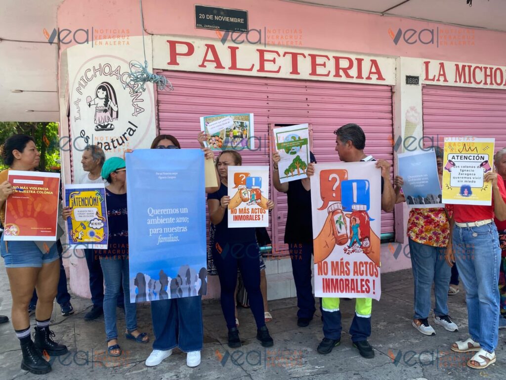 La mañana de este miércoles, vecinos del fraccionamiento Zaragoza realizaron una manifestación para exigir la reubicación del desayunador San Vicente Virgen María de Paul Auxiliadora, ubicado en la calle Tuero Molina, entre 20 de Noviembre y 2 de Abril.